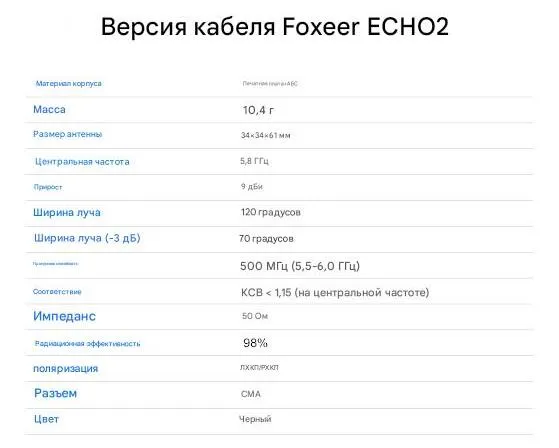 Патч-антенна Foxeer Echo 2 5.8G 9dBi RHCP (с фиксированным кабелем SMA)