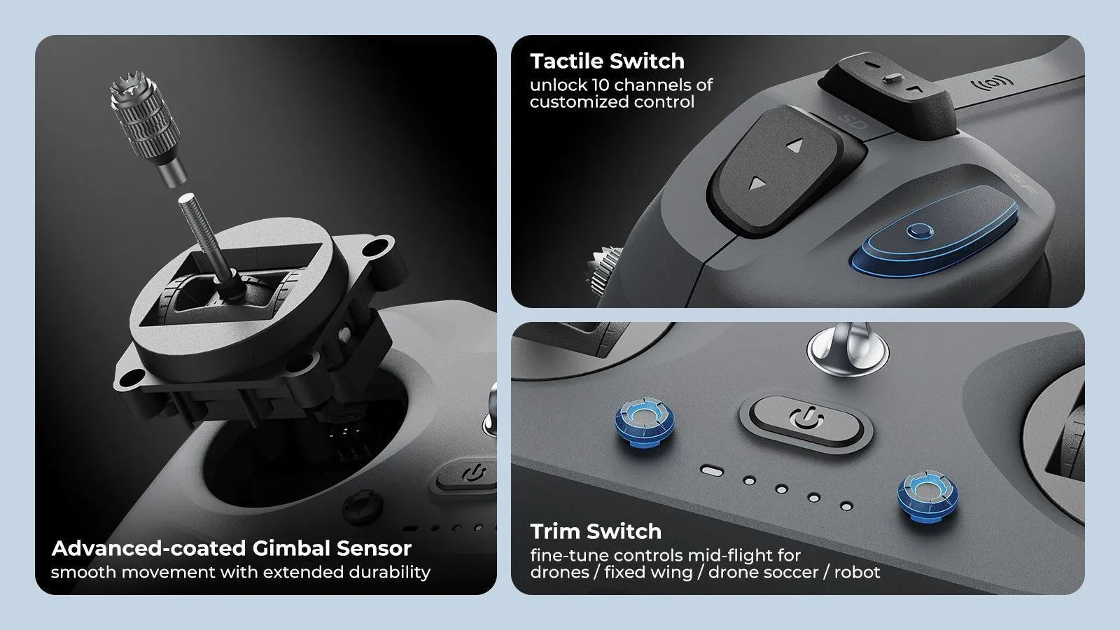 - Назначение: Дистанционное управление FPV-дронами, роботами, дрон-футбольными мячами, фиксированными крыльями с повышенными требованиями к плавности и точности