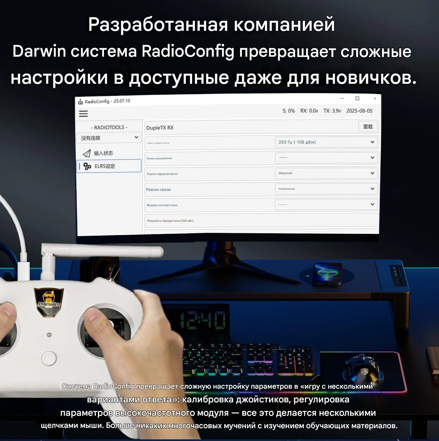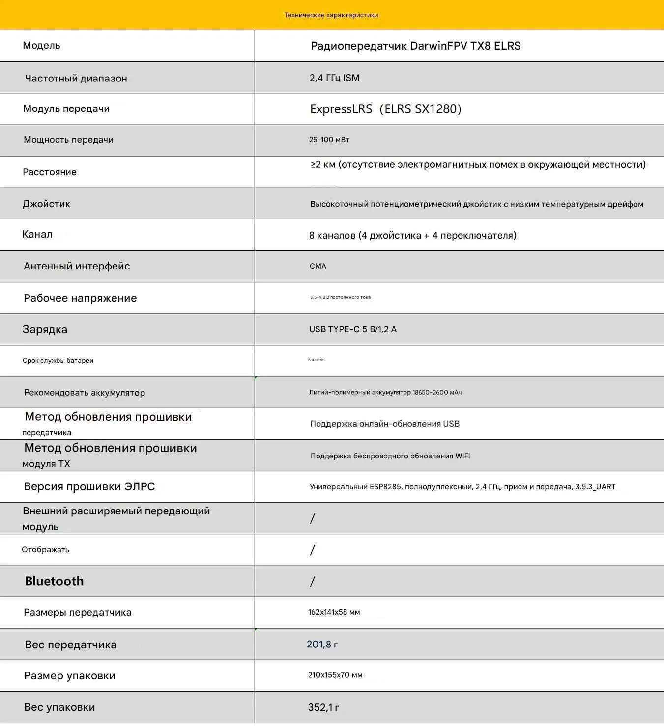 - Модель передатчика: DarwinFPV TX8 ELRS Radio Transmitter