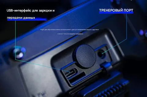 - USB Type-C (зарядка/симулятор), тренерский порт (3.5 мм jack)