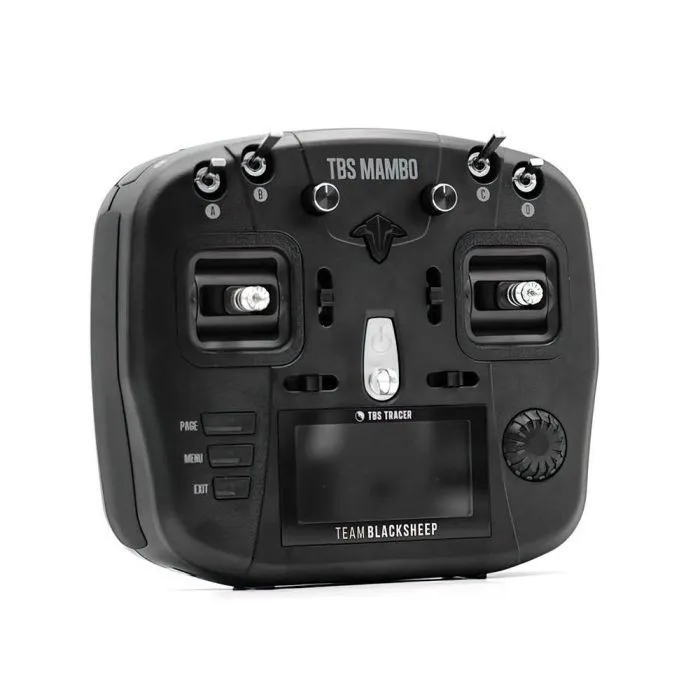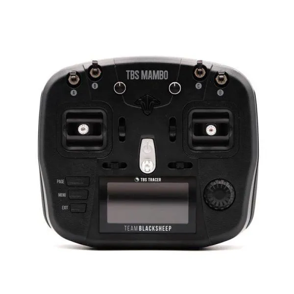 Радиопередатчик TBS Mambo представляет собой компактный полноразмерный пульт управления, разработанный Team BlackSheep для FPV-пилотов. Устройство сочетает традиционный форм-фактор с современными технологиями: встроенный TBS Tracer 2.4 ГГц обеспечивает сверхнизкую задержку 1.6 мс и частоту обновления 250 Гц, а слот JR Module Bay позволяет использовать внешние модули, включая TBS Crossfire. Стики с датчиками Холла имеют регулируемое сопротивление и натяжение, а также регулируемый ход газа и тангажа (±10°). Пульт питается от двух сменных аккумуляторов 18650 (не входят в комплект) и заряжается через USB-C. Оснащен 4 трехпозиционными переключателями, 1 двухпозиционным, 1 кнопкой, 2 потенциометрами, дисплеем 3.5″ и работает на прошивке FreedomTX (форк OpenTX). Вес 565 г.