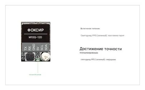 - Зелёный светодиод PPS (постоянно — питание, мигает — достигнута точность позиционирования)