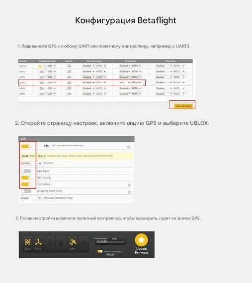 - В конфигураторе Betaflight для данного модуля необходимо установить поворот компаса: CW 180° Flip