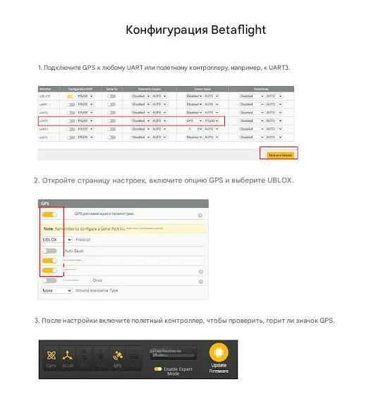 - В конфигураторе Betaflight для данного модуля необходимо установить поворот компаса: CW 270° Flip. Это важное отличие от модели M10Q-120 V2