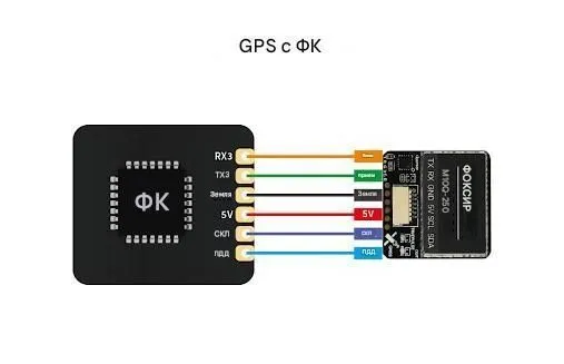 - Подключить модуль к любому свободному UART на полётном контроллере, используя контакты 5V, GND, RX (к TX контроллера), TX (к RX контроллера), SCL, SDA. Вывод Timepulse в стандартных FPV-сборках обычно не используется