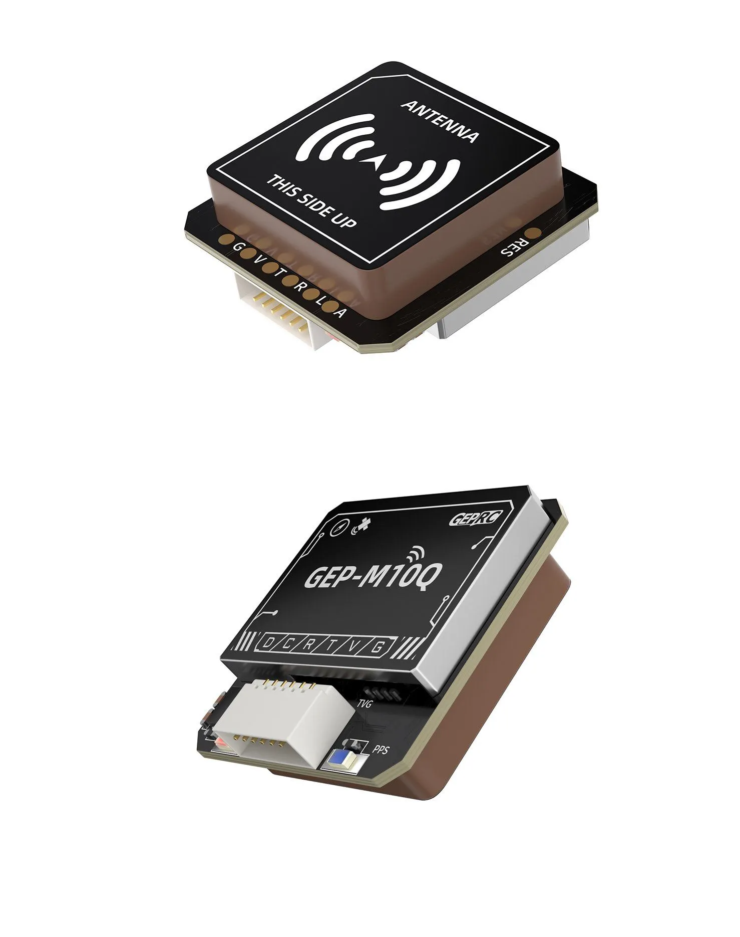 GPS-модуль GEPRC GEP-M10Q представляет собой высокоточный навигационный приемник на базе чипа u-blox M10050 (серия M10), дополненный интегрированным магнитометром QMC5883L. Модуль предназначен для использования на FPV-дронах, мультироторных системах, самолетах и других моделях, где требуется определение курса (направления) помимо координат. Поддерживает совместное позиционирование по системам GPS, BDS (BeiDou), Galileo, QZSS и SBAS, обеспечивая быстрое и стабильное определение координат. Оснащен увеличенной керамической антенной 18×18 мм для улучшенного приема сигнала, встроенным Flash-чипом и фарадовым конденсатором для сохранения параметров и быстрого горячего старта. Магнитометр QMC5883L обеспечивает точное определение направления, что необходимо для функций возврата домена (RTH) с сохранением ориентации и полетов по маршруту.