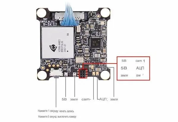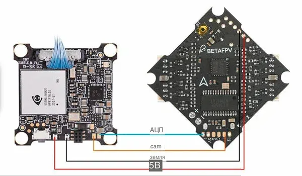 - Специальная пайка (подключение ADC-контакта камеры к CAMERA_CONTROL-пину FC) и настройка в CLI Betaflight