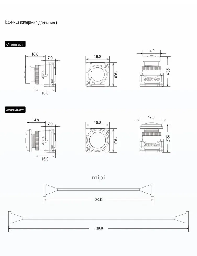 Компактная цифровая FPV-камера со стандартным объективом (160°) для интеграции в системы DJI Digital FPV (Caddx Vista / DJI Air Unit). Модель построена на базе сенсора Sony 1/2 дюйма и обеспечивает передачу цифрового видеопотока 720p/60fps с задержкой ~3 мс через интерфейс MIPI CSI. Камера предназначена для прямой замены штатной оптики в модулях Vista и Air Unit, предлагая улучшенные характеристики: высокую светочувствительность 0.00001 Люкс, широкий динамический диапазон 100 дБ и компактный форм-фактор 19x19 мм.