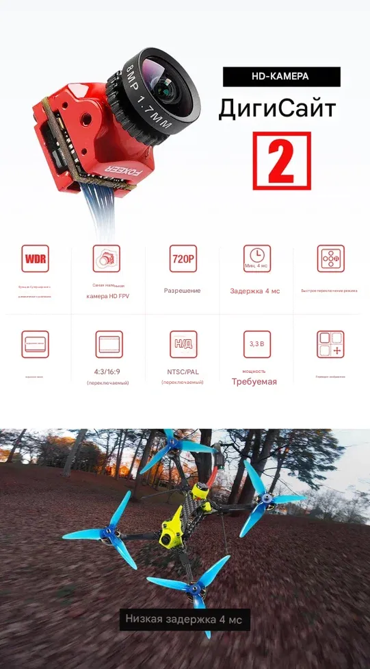 - Тип: Гибридная (аналоговая/цифровая) FPV-камера