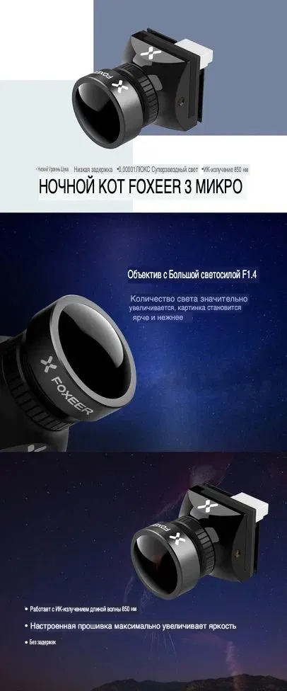 По запросуКамера Foxeer Toothless Nano (объектив StarLight)