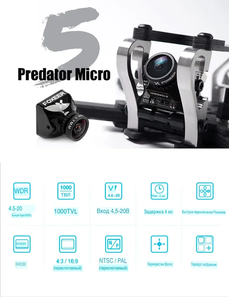 - Модель: Foxeer Micro Predator 5 (версия Full Case)