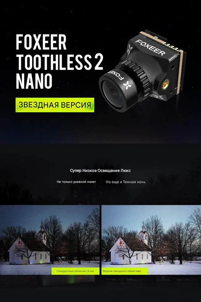 - Назначение: Ночные полеты и полеты в условиях крайне низкой освещенности на FPV-дронах