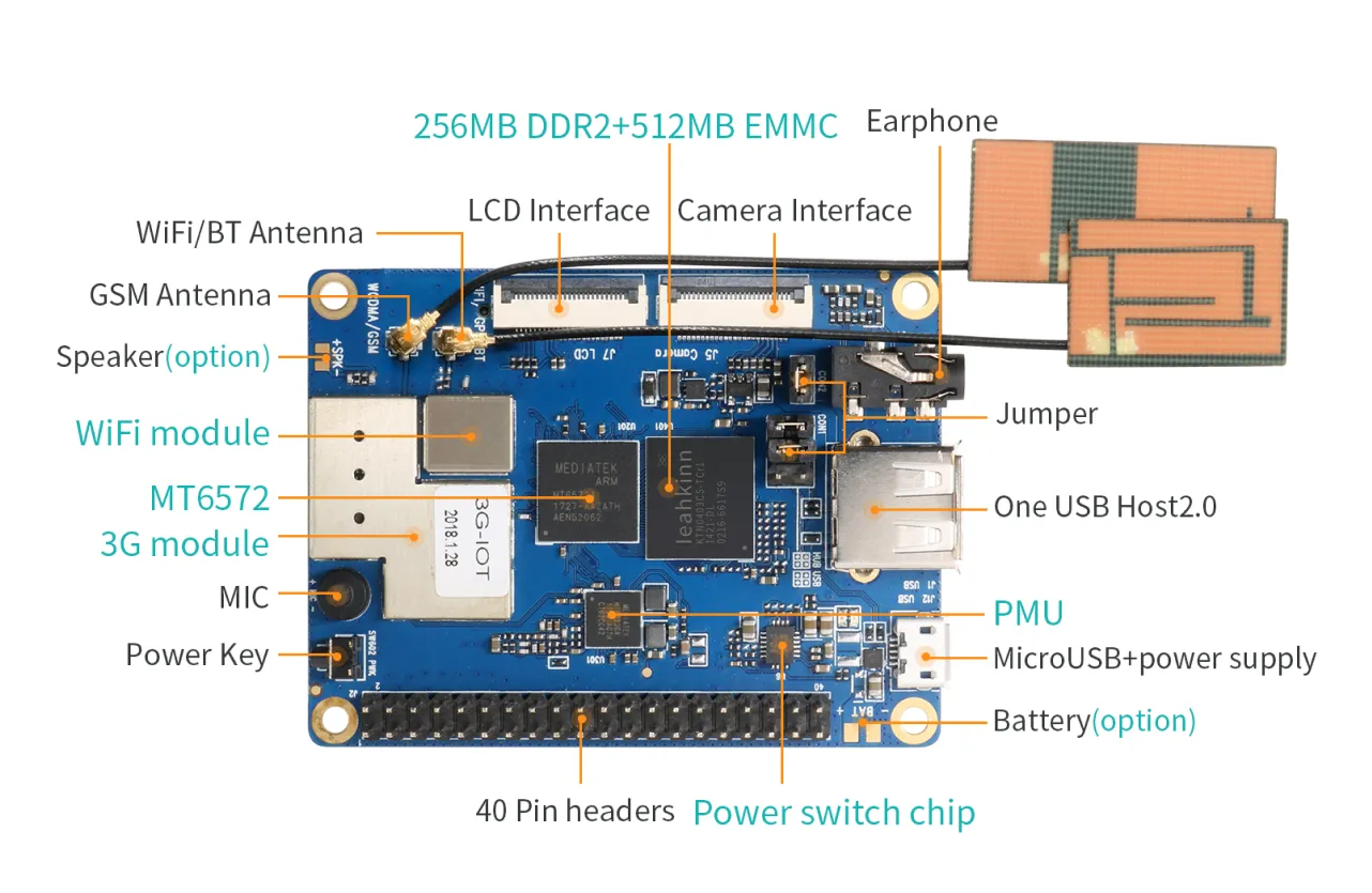 - Поддерживает множество ОС; есть TF-карта, USB 2.0, 40-pin GPIO, порт камеры CSI, 512 МБ eMMC.