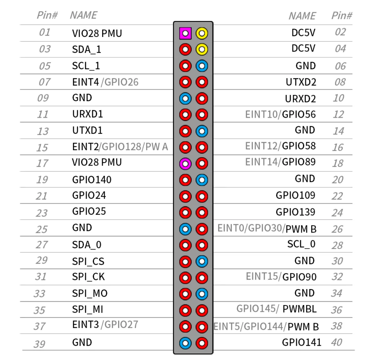 - Периферия — 40-pin: GPIO 1.8В, SPI×2, I2C×3, UART×2