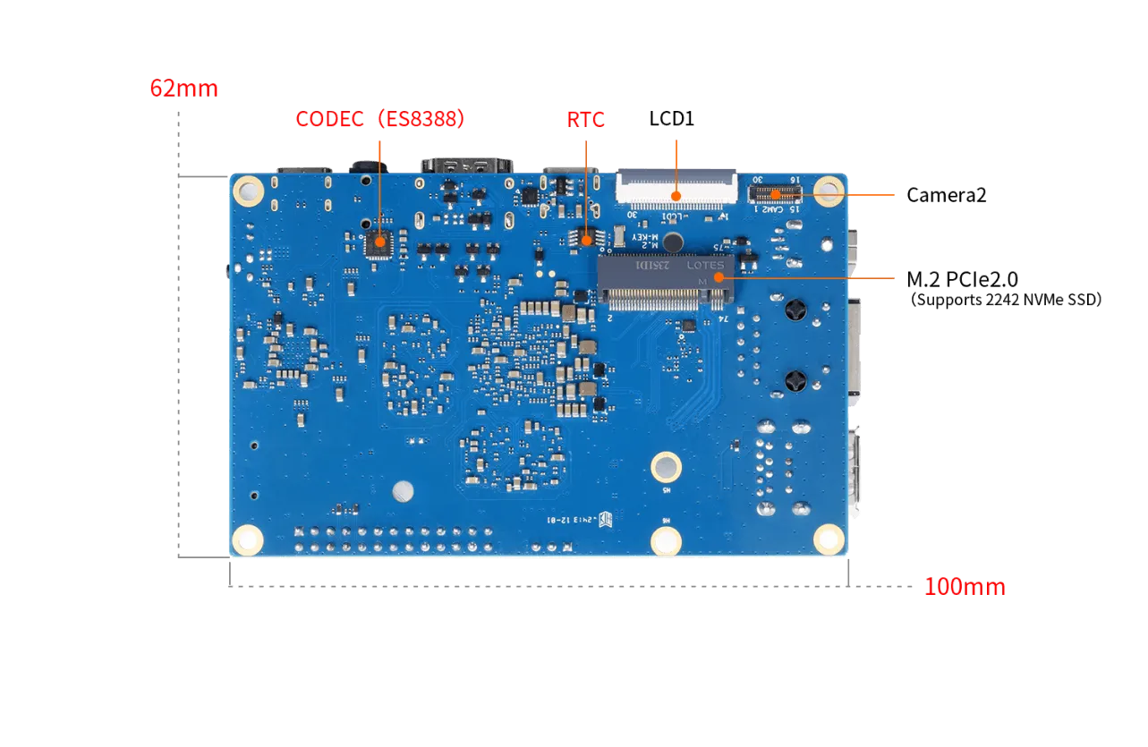 - Хранение: microSD до 128 ГБ, M.2 PCIe 2.0 NVMe SSD, 16 МБ QSPI Flash