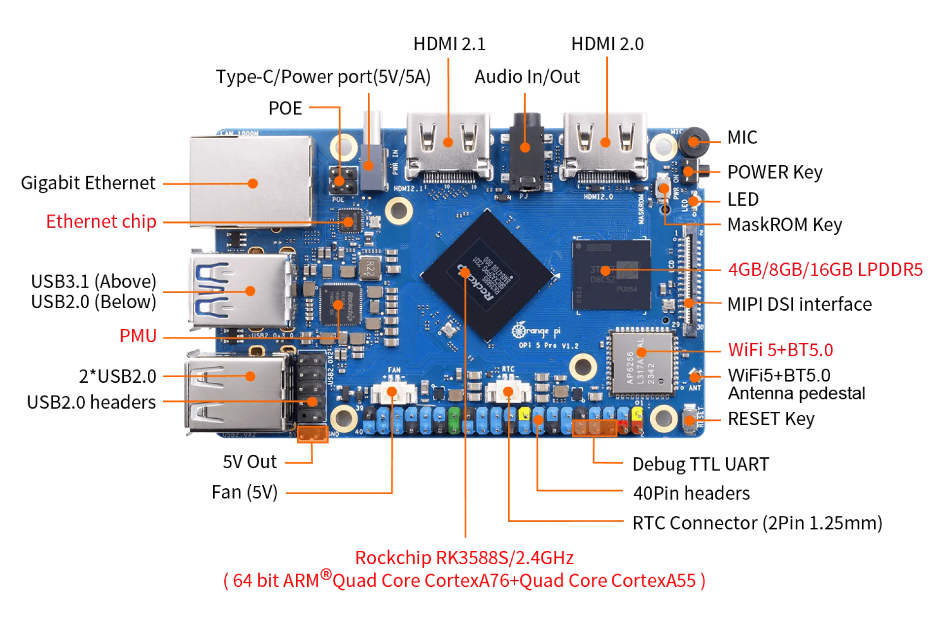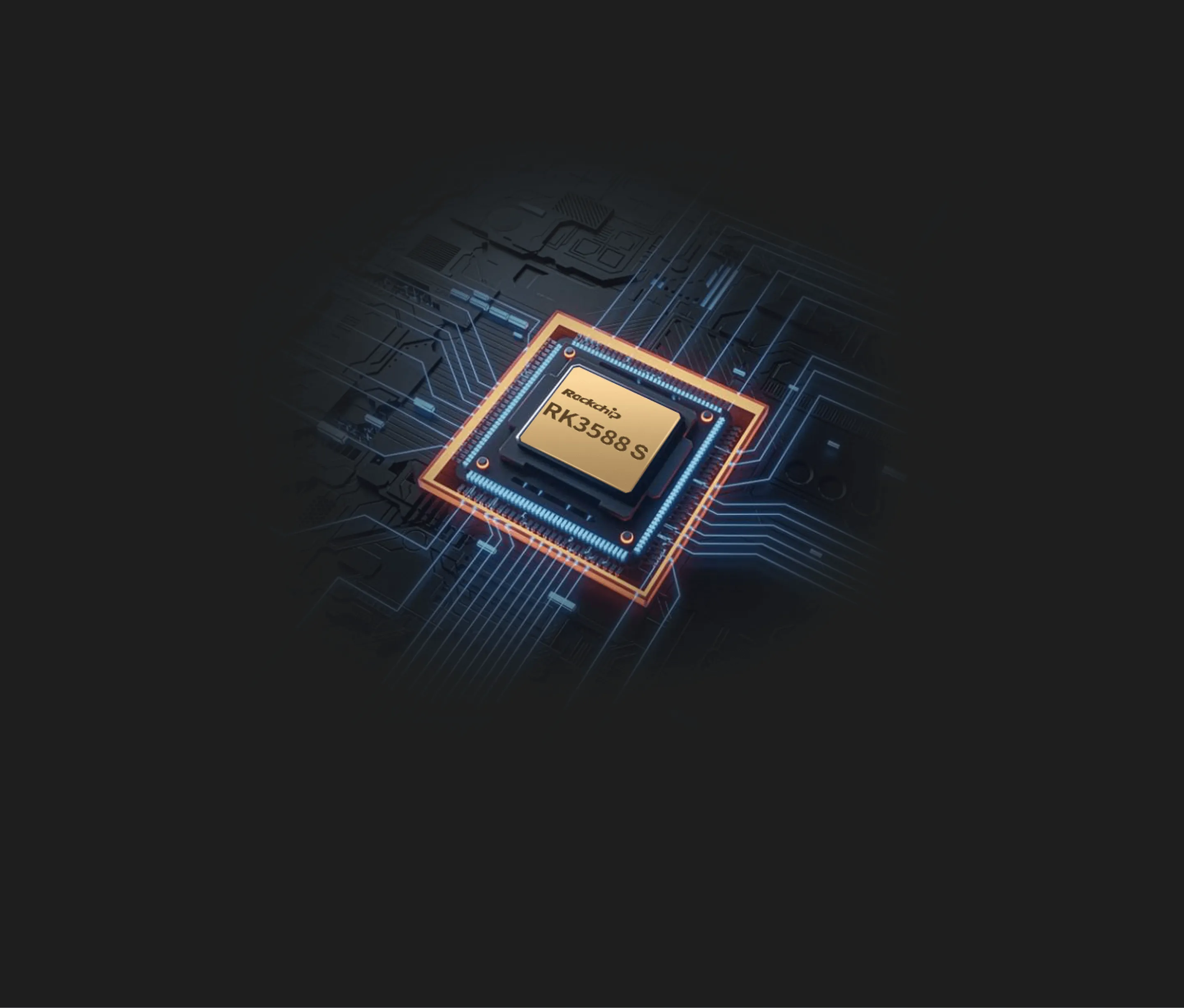 - Процессор : Rockchip RK3588S (8 нм LP), 8 ядер (4× A76 2.4 ГГц + 4× A55 1.8 ГГц)