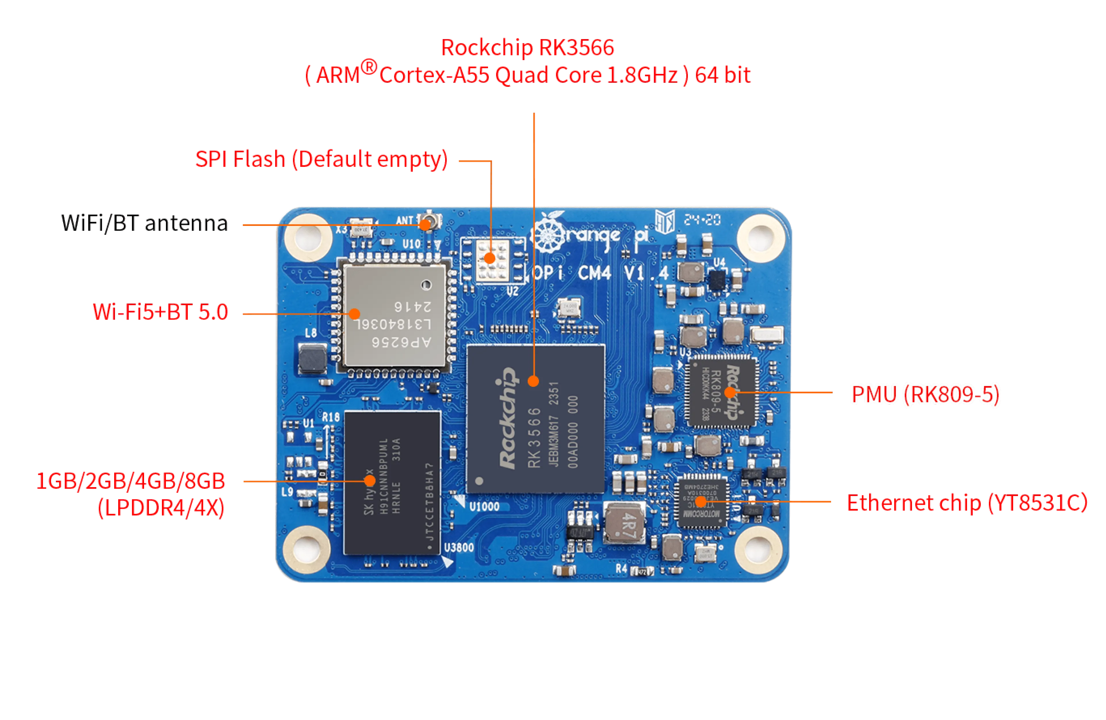 Оснащён процессором Rockchip RK3566 (четырёхъядерный 64-бит Cortex-A55 до 1.8 ГГц, 22 нм техпроцесс),
