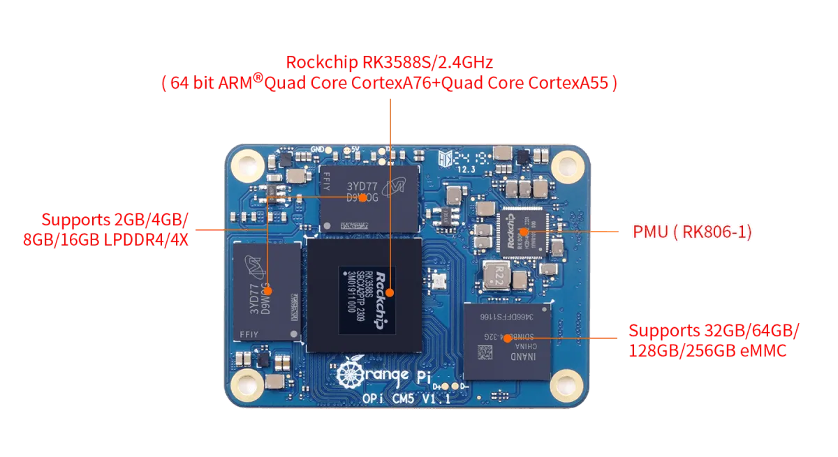 - Процессор: Rockchip RK3588S (8 нм, LP-процесс), 8-ядерный 64-битный CPU: