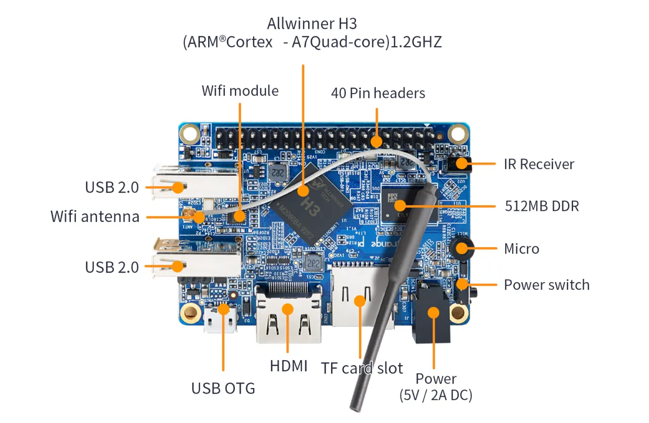 - Процессор: AllWinner H3, Quad-core Cortex-A7 (32-бит)