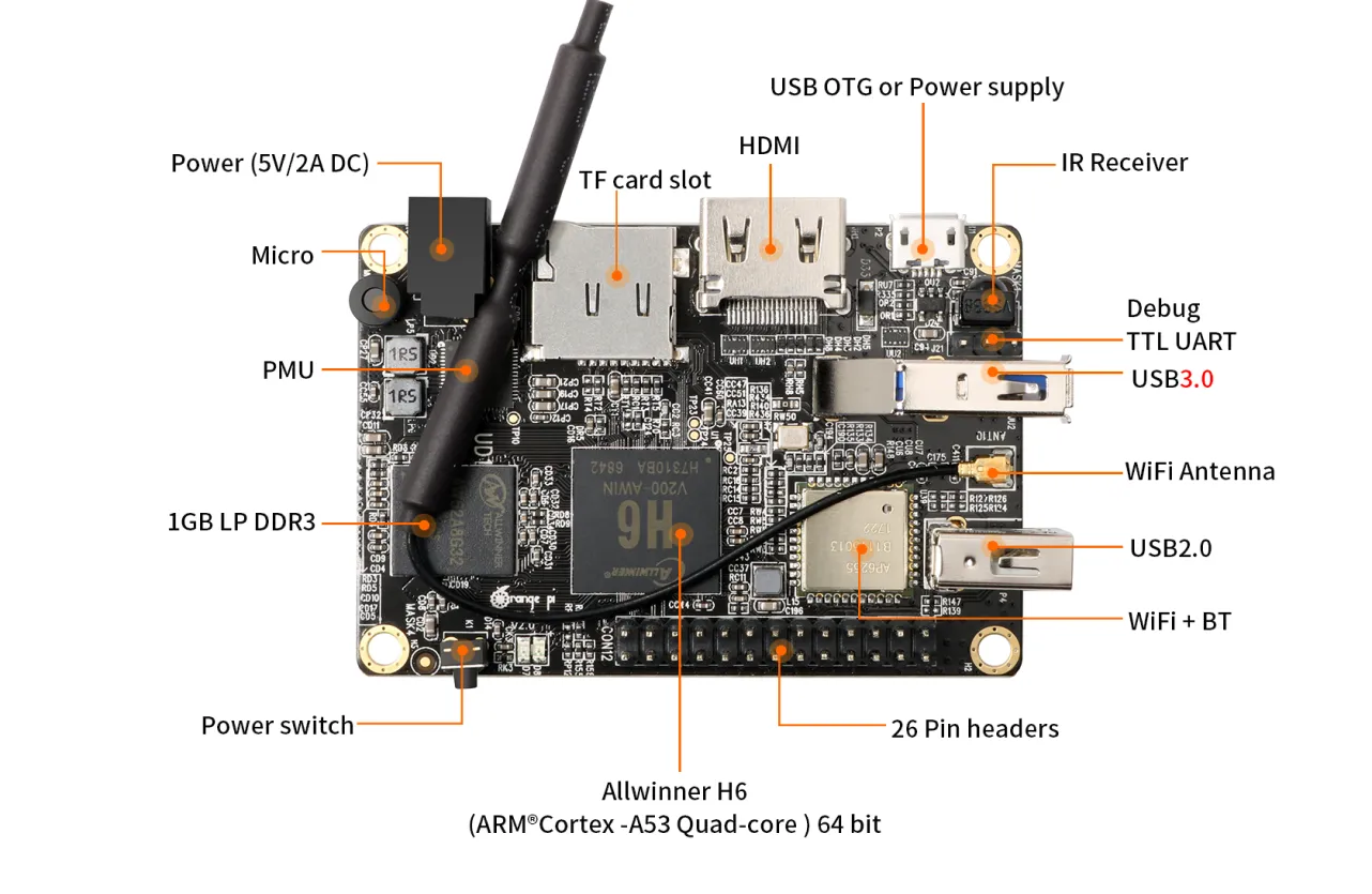- Процессор: Allwinner H6, Quad-core 64-bit ARM Cortex-A53