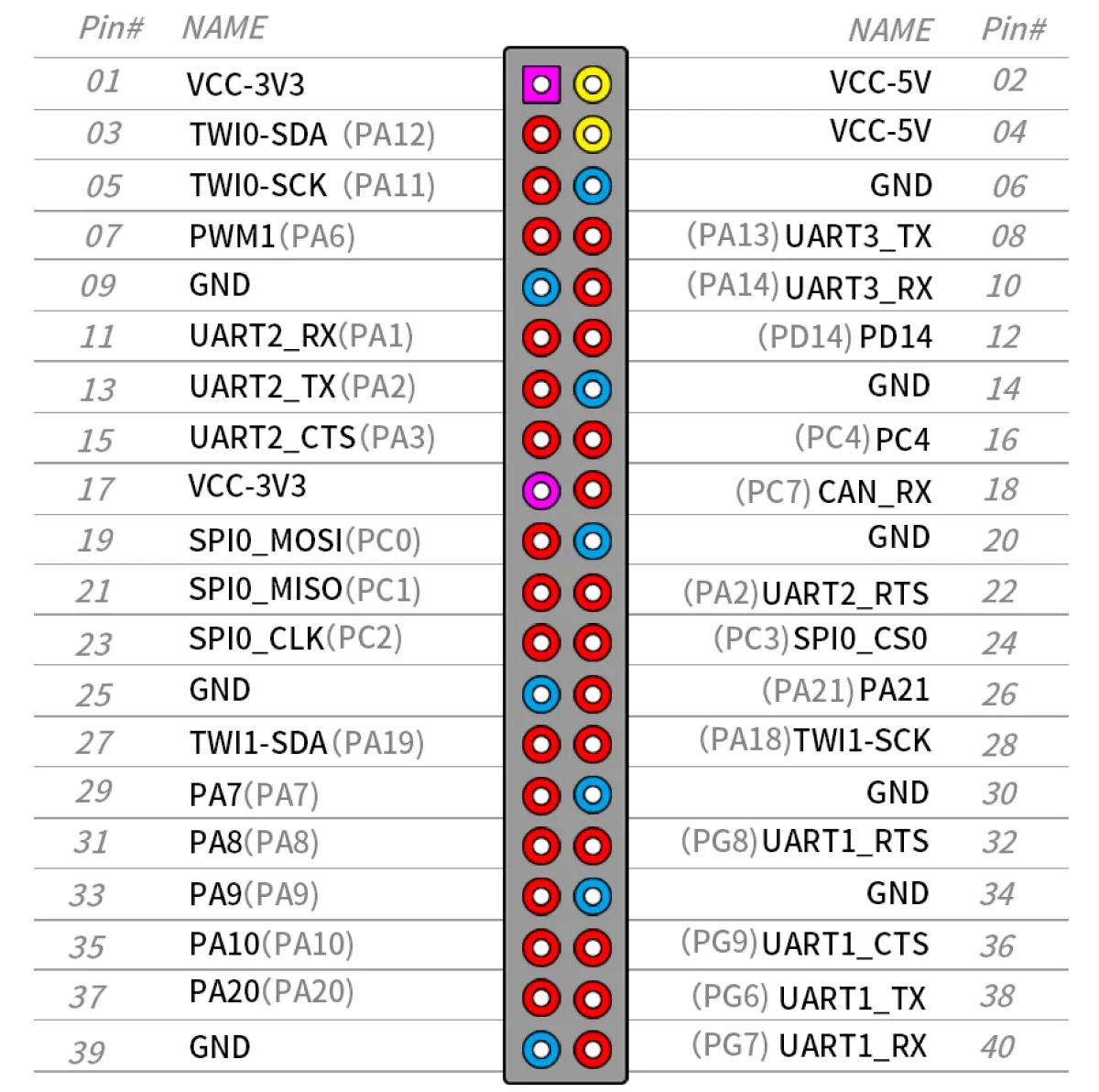 - GPIO: 40 пинов, отдельный 3-пиновый UART/GND