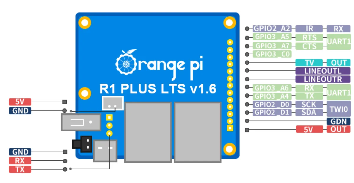 - UART-TX, UART-RX, GND