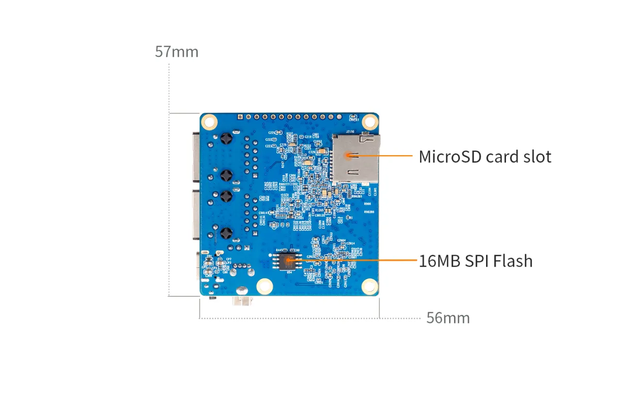 Плата оснащена двумя гигабитными Ethernet-портами, USB 2.0, слотом для TF-карты, 13-пиновым разъёмом, а также разъёмом для вентилятора.