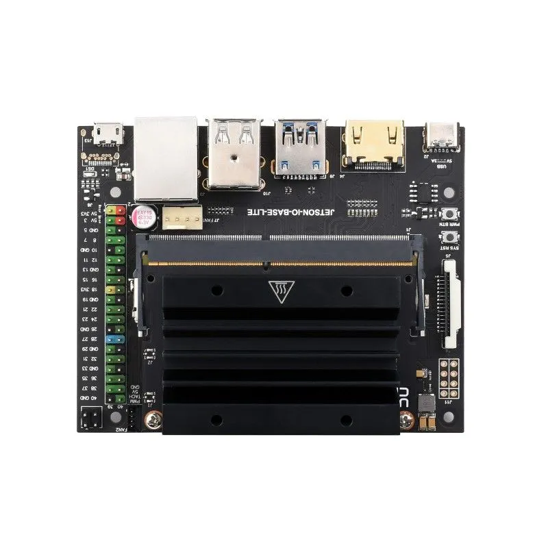 Waveshare Jetson Nano Development / Expansion Kit Lite — это доступная и компактная платформа для входа в мир AI-разработки на Jetson. Базовый комплект включает всё необходимое для старта: материнскую плату JETSON IO BASE LITE, вычислительный модуль Jetson Nano с 16 ГБ встроенной памяти (eMMC), официальный радиатор для пассивного охлаждения и карту памяти. Это основа для обучения, прототипирования и создания бюджетных AI-проектов.