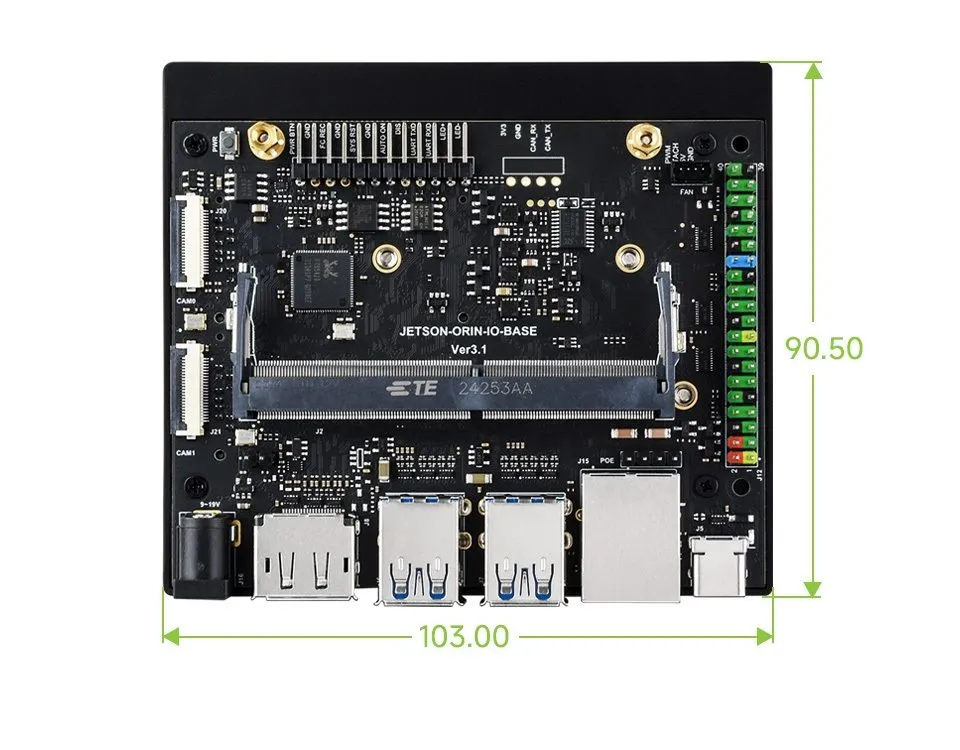 Orin Nano / NX Base Board — это универсальная материнская плата от Waveshare для разработчиков и интеграторов, которым требуется гибкая, компактная и полностью совместимая платформа для создания собственных AI-устройств на базе модулей NVIDIA Jetson Orin Nano и Orin NX. Она идеально подходит как для прототипирования, так и для интеграции в готовые встраиваемые и периферийные системы в проектах робототехники, компьютерного зрения, видеонаблюдения, промышленного IoT и AI-систем реального времени.