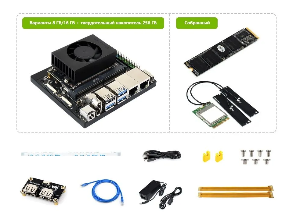 - Базовый набор: Включает только плату-носитель (carrier board) с интерфейсами и систему охлаждения.