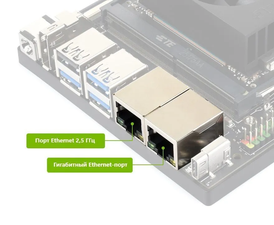 - GPU: 1024 ядра Ampere, поддержка PCIe Gen4, режимы питания 10-40 Вт, кодирование/декодирование видео 4K/8K