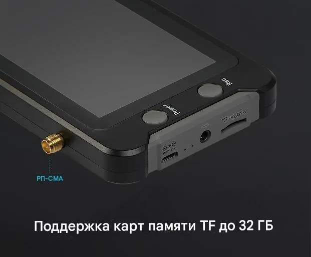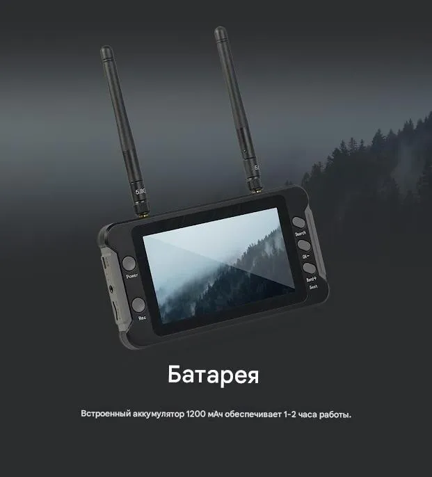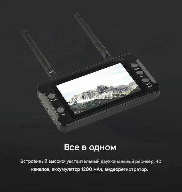 - Тип устройства: Портативный FPV-монитор All-in-One (со встроенным приёмником и видеорекордером)