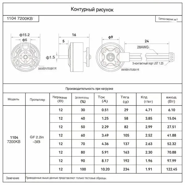 - Номинальное рабочее напряжение: 3S LiPo (совместим с 2S)