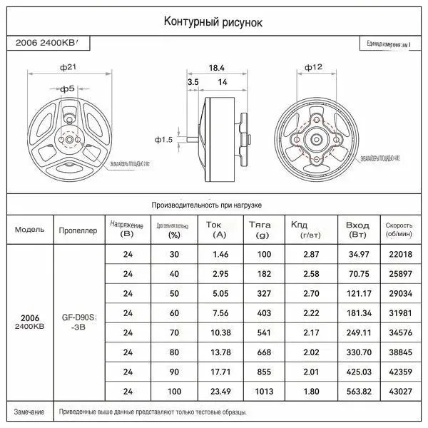 - Крепление мотора: 4 × M2, межосевое расстояние 12 мм