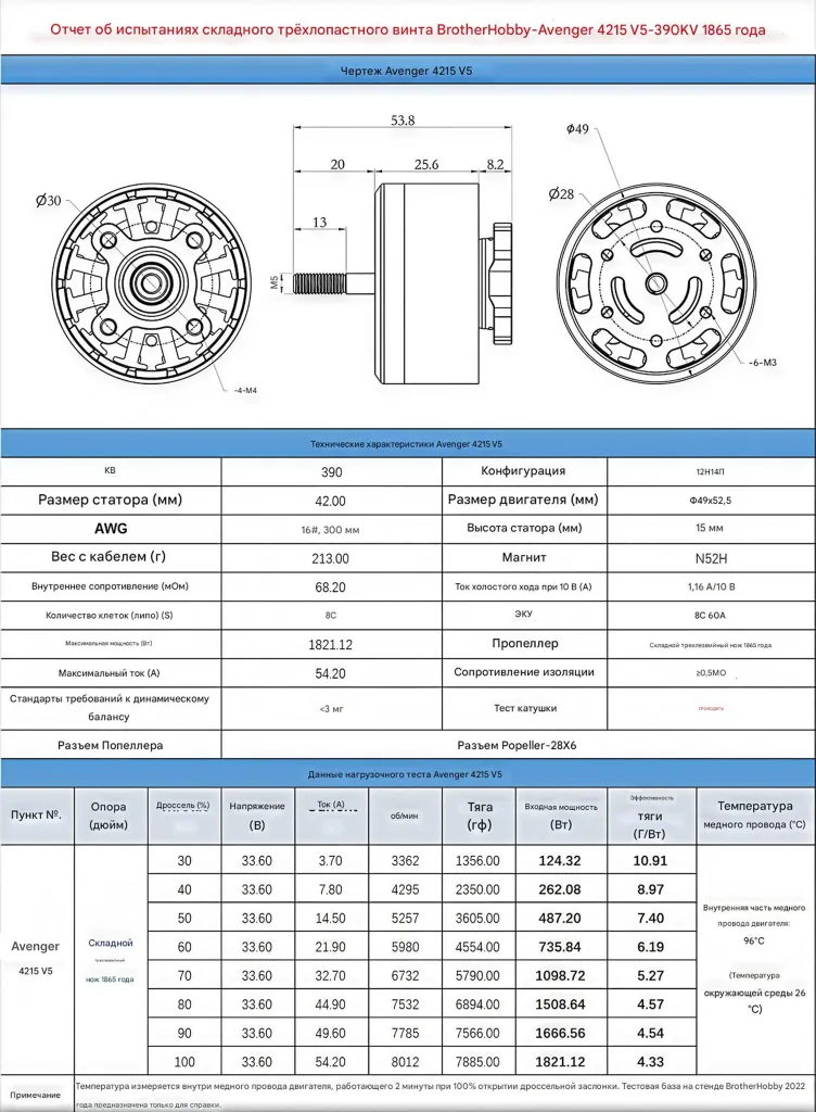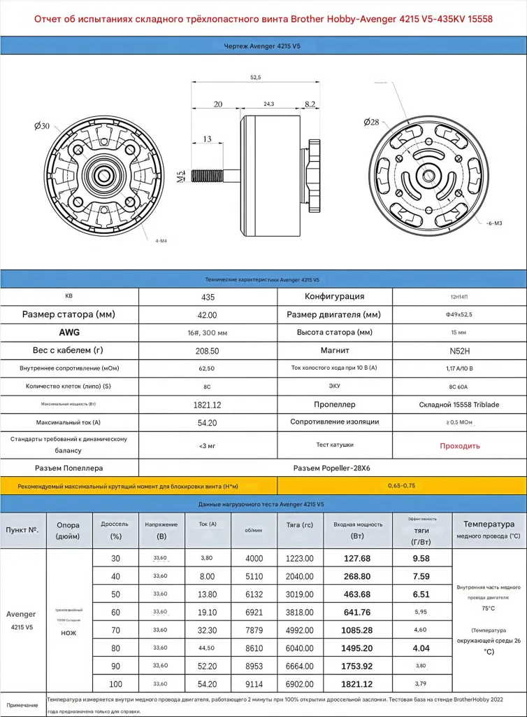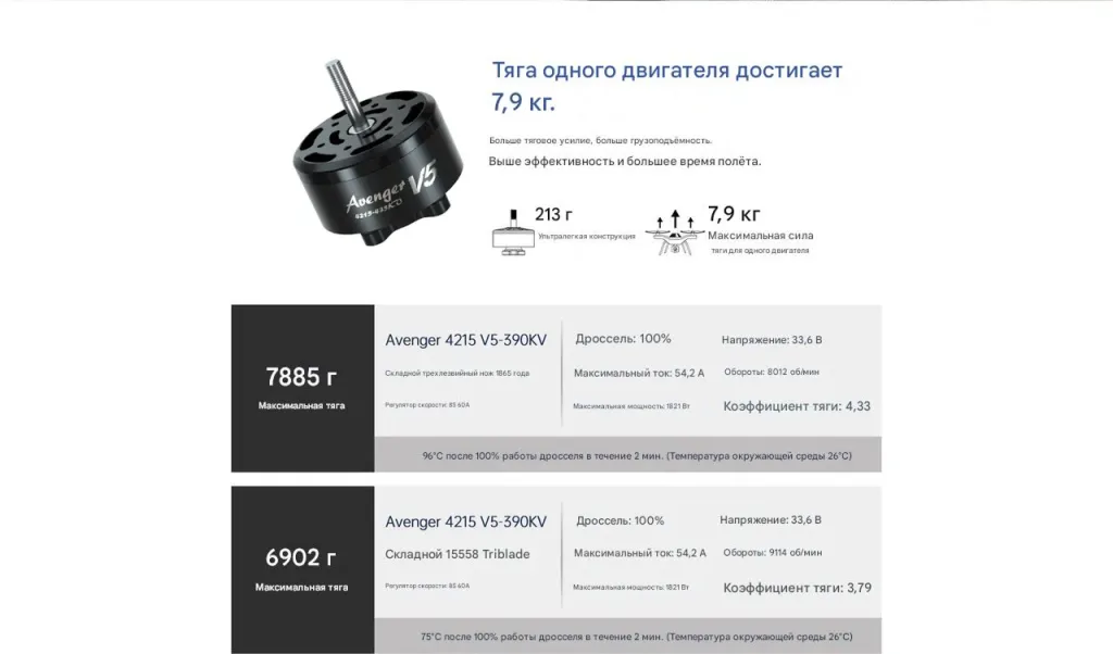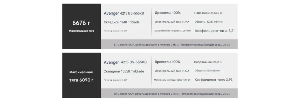 - Макс. тяга: 4420 г