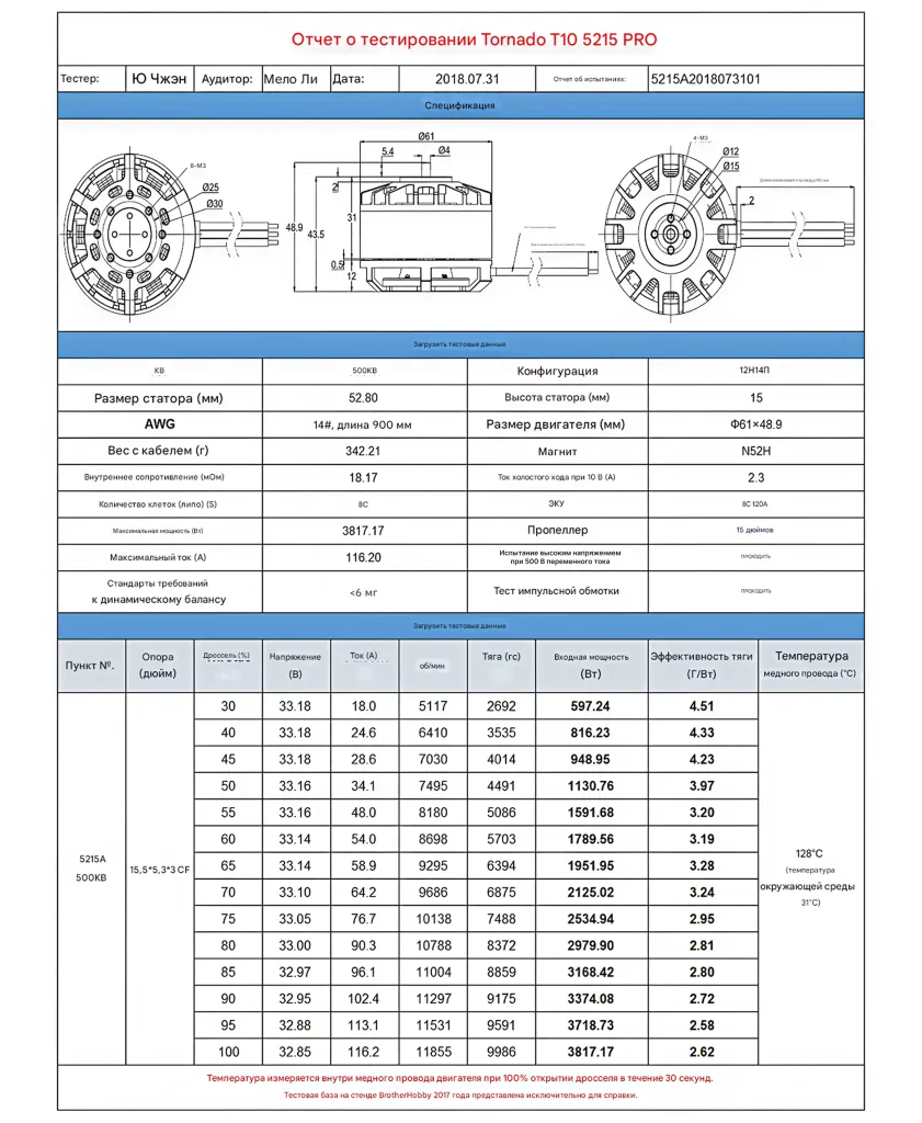 Полный тестовый отчет двигателей для профессиональных мультикоптеров