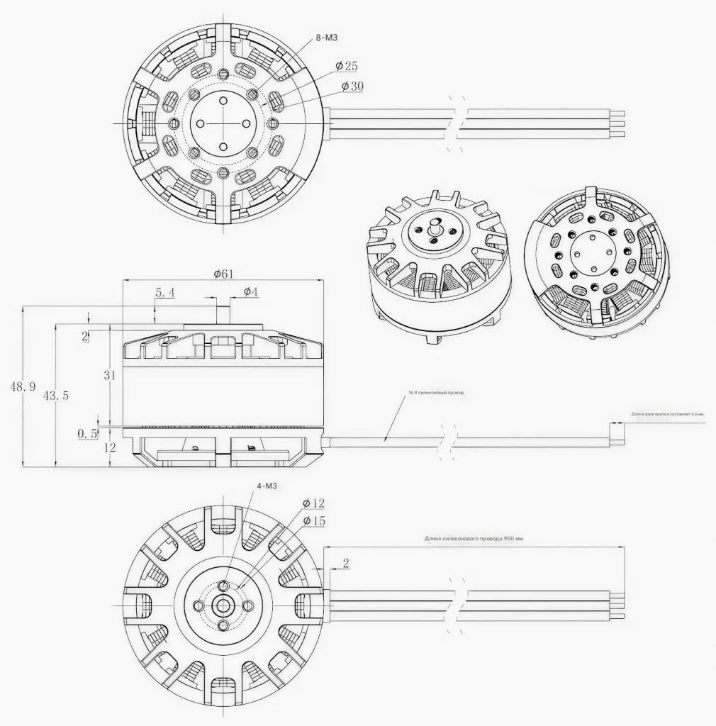 - Размер мотора (мм)