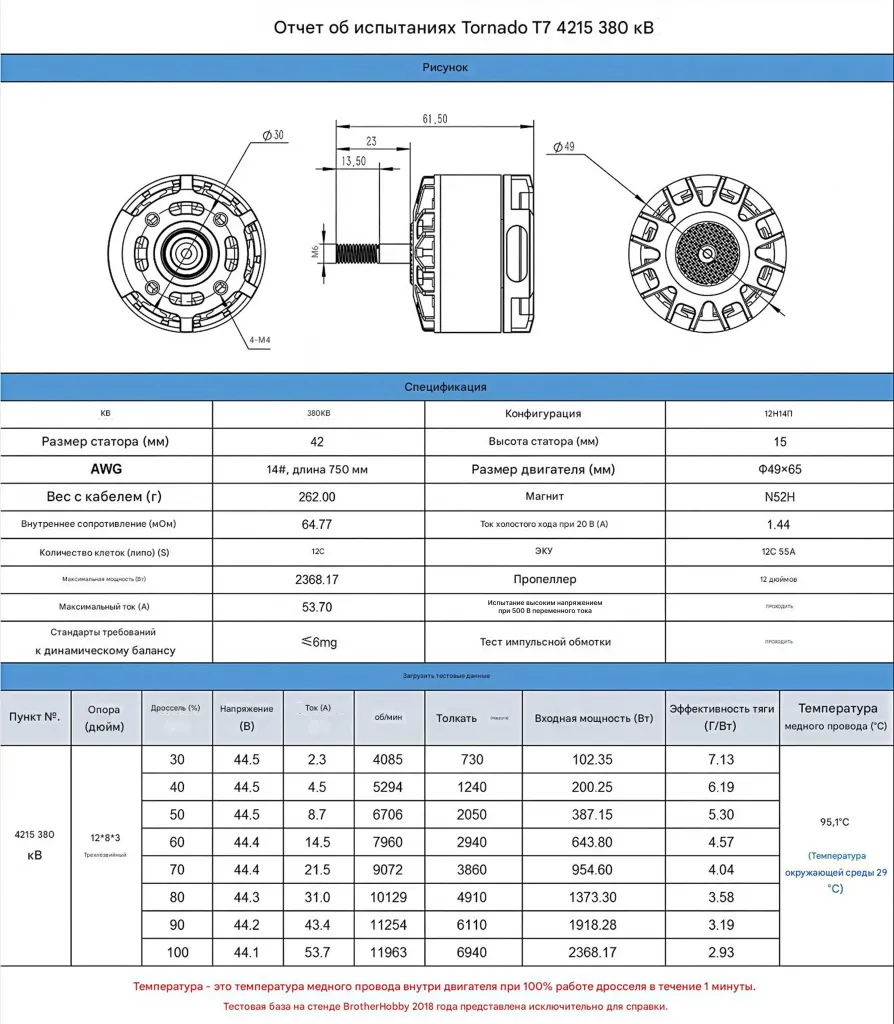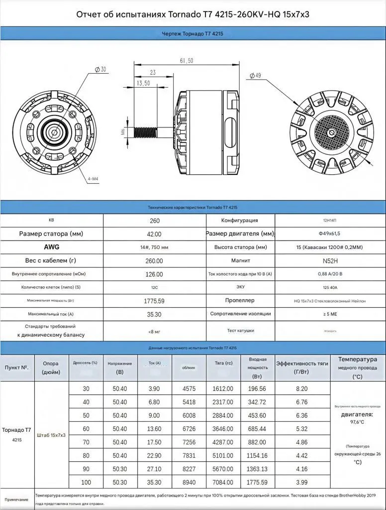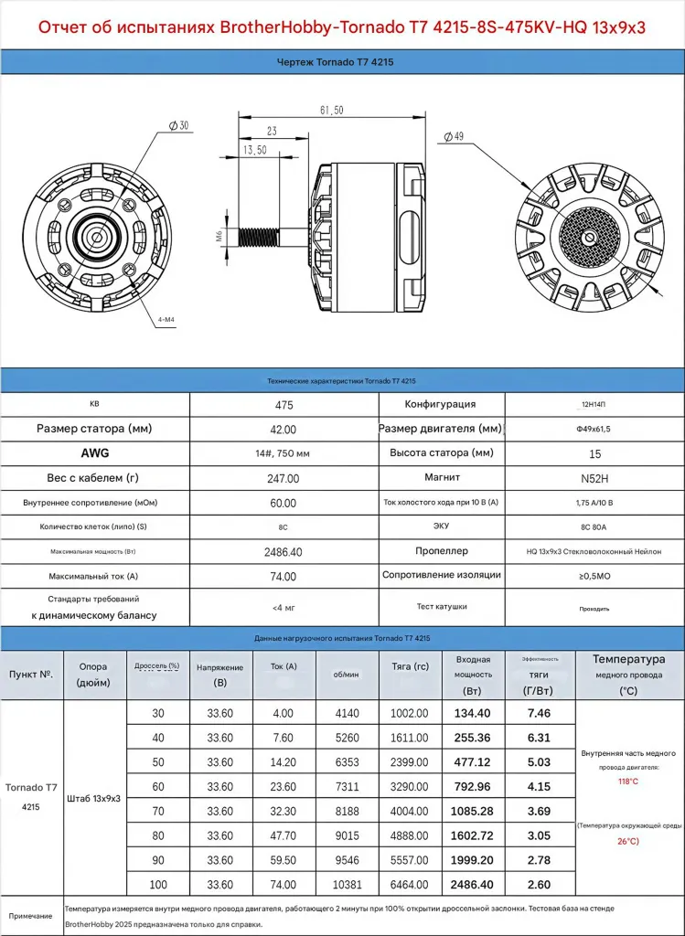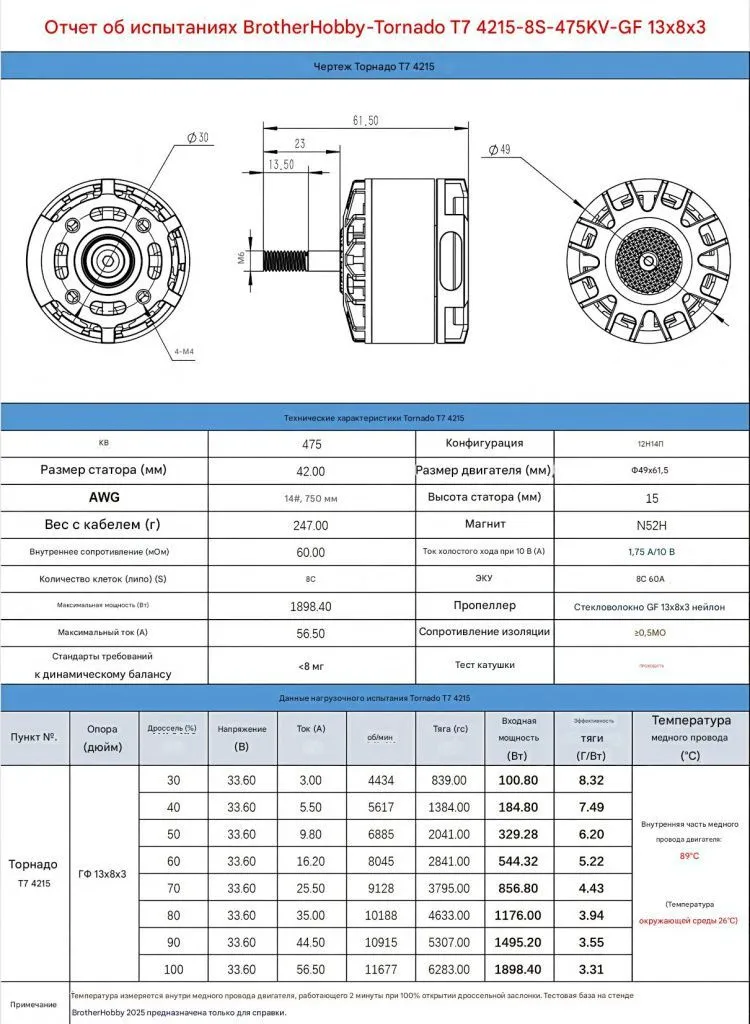 BrotherHobby Tornado T7 4215 — это мощный мотор для профессиональных дронов, рассчитанный на тяжёлые нагрузки и продолжительную работу.