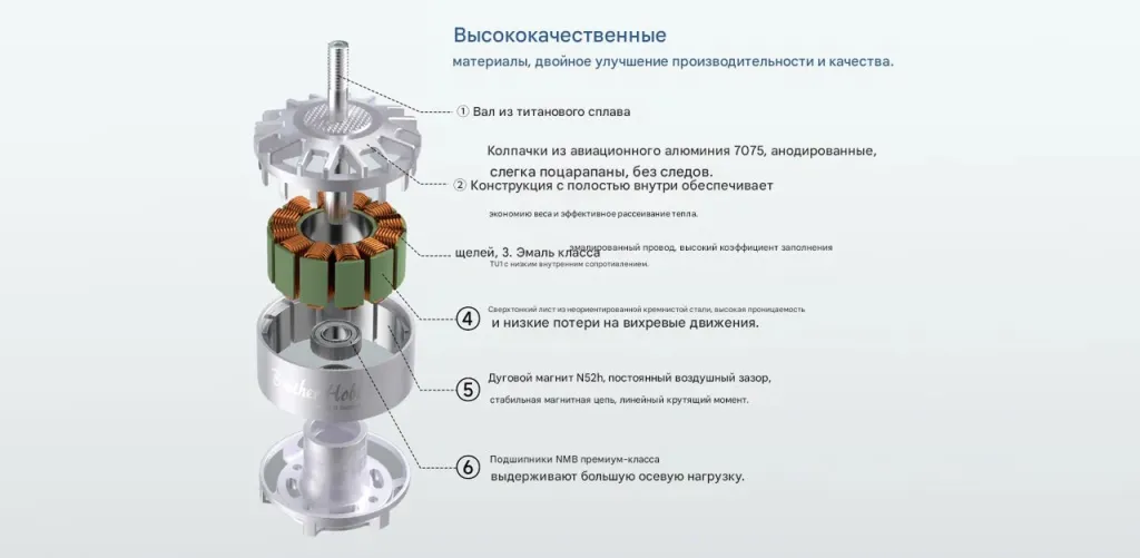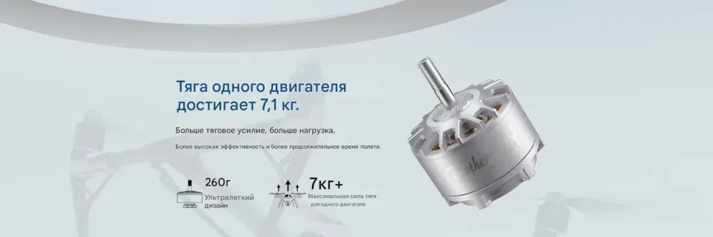Он используется в съёмочных платформах, FPV heavy-lift сборках и промышленных мультикоптерах.