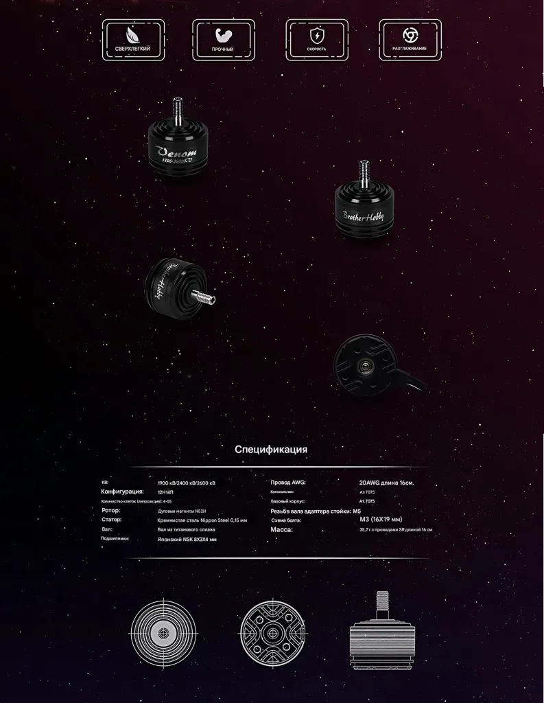 BrotherHobby 2205 Motor — лёгкий и быстрый двигатель для FPV-дронов