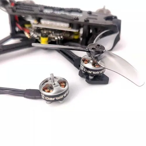Высокооборотистый бесколлекторный двигатель, рекомендованный для установки на микро-дрон TinyApe. Модель 1103 с оборотами 8000KV разработана для сверхлегких 1-2S систем и обеспечивает высокую мощность и отзывчивость при минимальном весе. С конфигурацией 9N12P и весом всего 3.7 г, этот мотор идеально подходит для сборки ультралегких whoop- и toothpick-дронов, где важен каждый грамм и требуется высокая динамика полета.