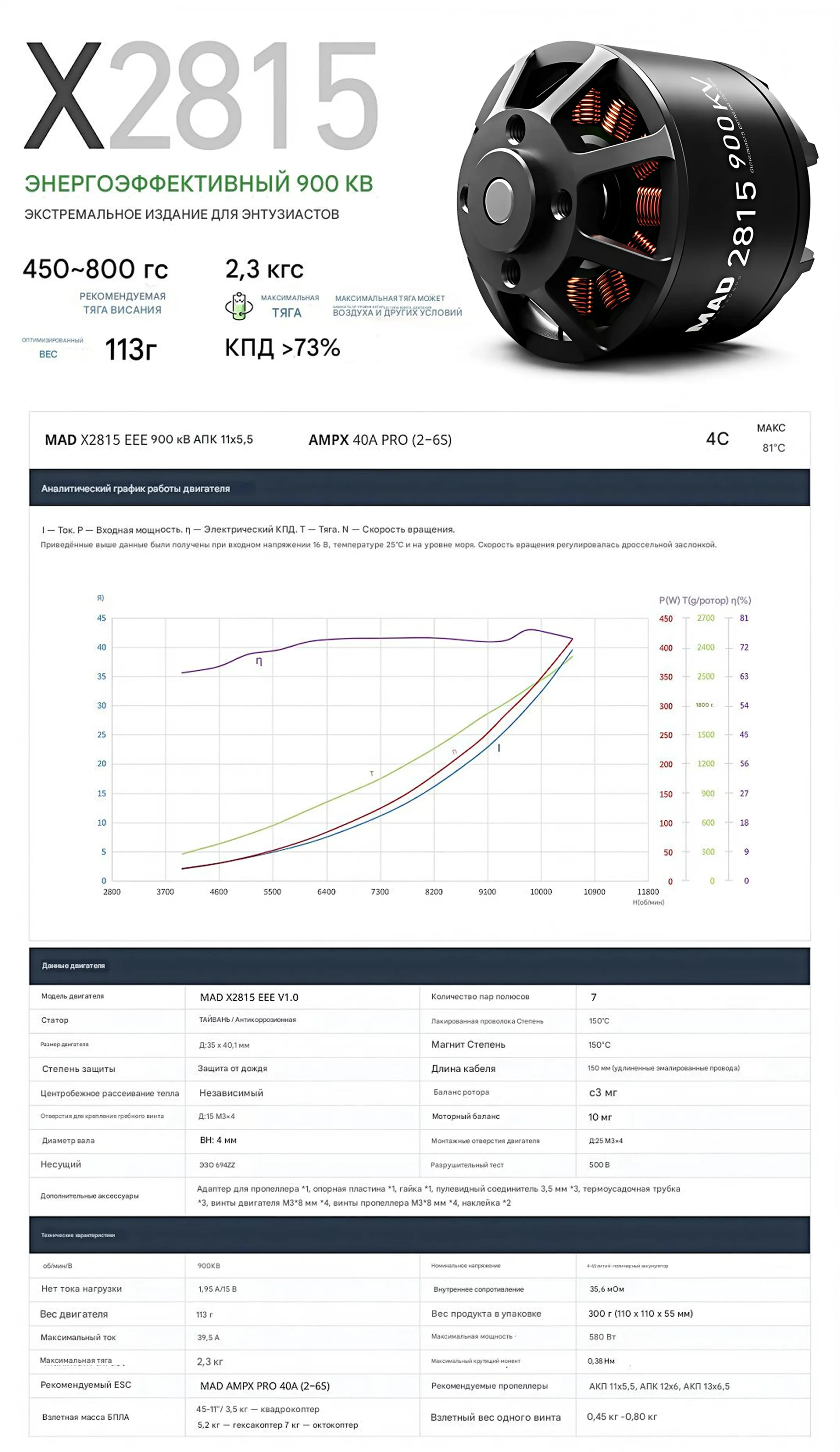 Серия MAD X2815 — это проверенные временем моторы для малых и средних промышленных дронов, отличающиеся высокой эффективностью и стабильной работой при продолжительных полётах.