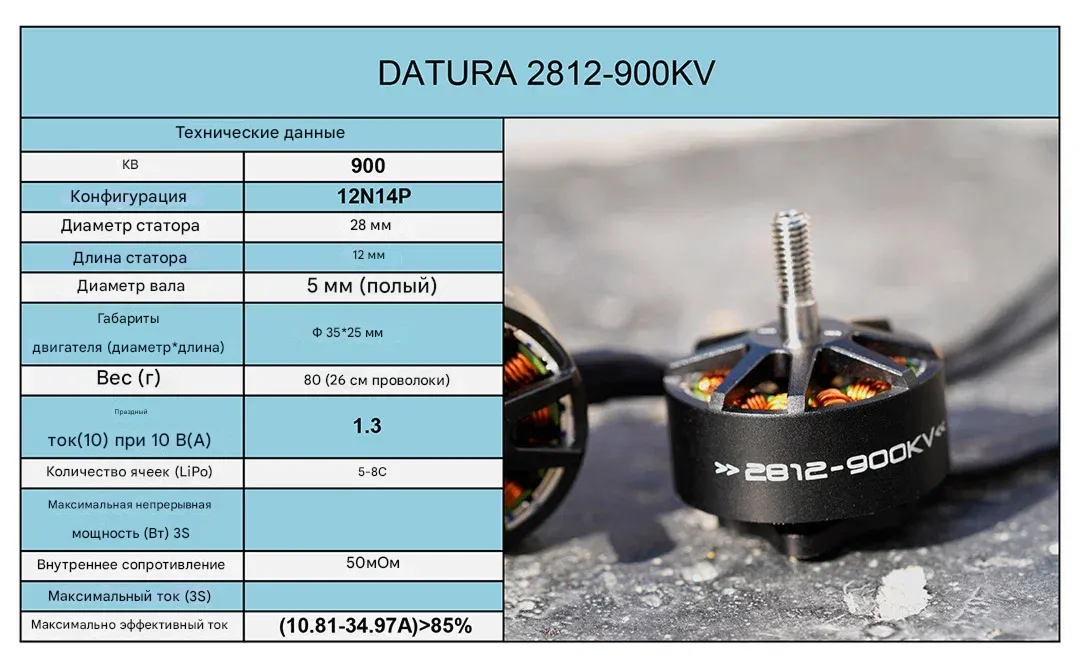 - Рекомендуемое напряжение питания: 5–8S LiPo (18.5–29.6 В)
