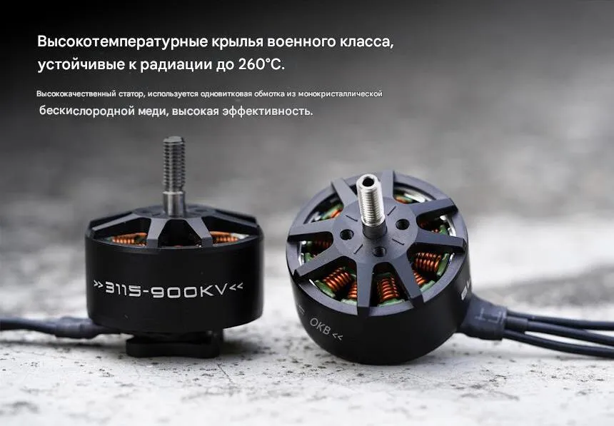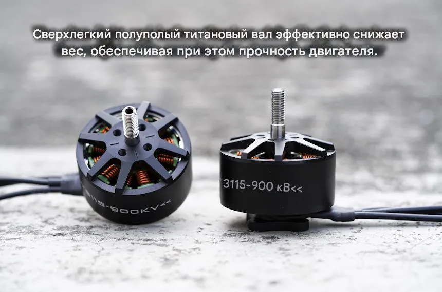 Бесколлекторный двигатель Foxeer Black Hornet 3115-900KV серии Black Hornet, разработанный для эффективных и дальних (long range) FPV-полётов. Мотор имеет размер статора 3115 (31x15 мм) и низкий показатель KV (900 об/мин/В), что оптимизирует его для работы с винтами большого диаметра (7–9 дюймов) на напряжениях 4–6S. Ключевая особенность — полый титановый вал, снижающий вес при сохранении высокой прочности. Двигатель обеспечивает высокий крутящий момент и эффективность, необходимые для крейсерских полётов, грузовых дронов и кинематографических платформ.