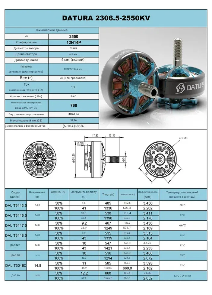 Бесколлекторный двигатель Foxeer Datura 2306.5-2020KV из серии Datura, созданный для мощных и отзывчивых 5-дюймовых дронов. Мотор имеет размер статора 2306.5 (23x6.5 мм) и значение KV 2020, оптимизированное для работы с аккумуляторами 4–6S. Низкое внутреннее сопротивление и виброгасящая конструкция обеспечивают агрессивную динамику, резкий подхват и высокий запас тяги, необходимые для техничного фристайла и быстрых гонок на 5-6S.