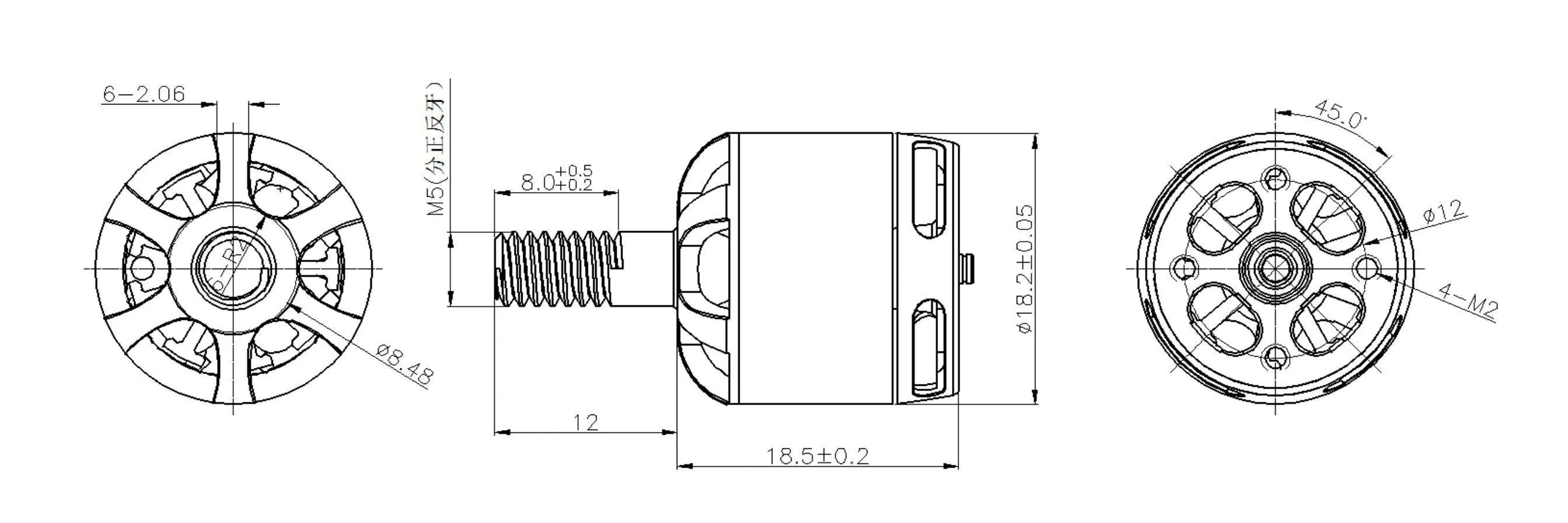 - Посадочная резьба под гайку пропеллера: M5