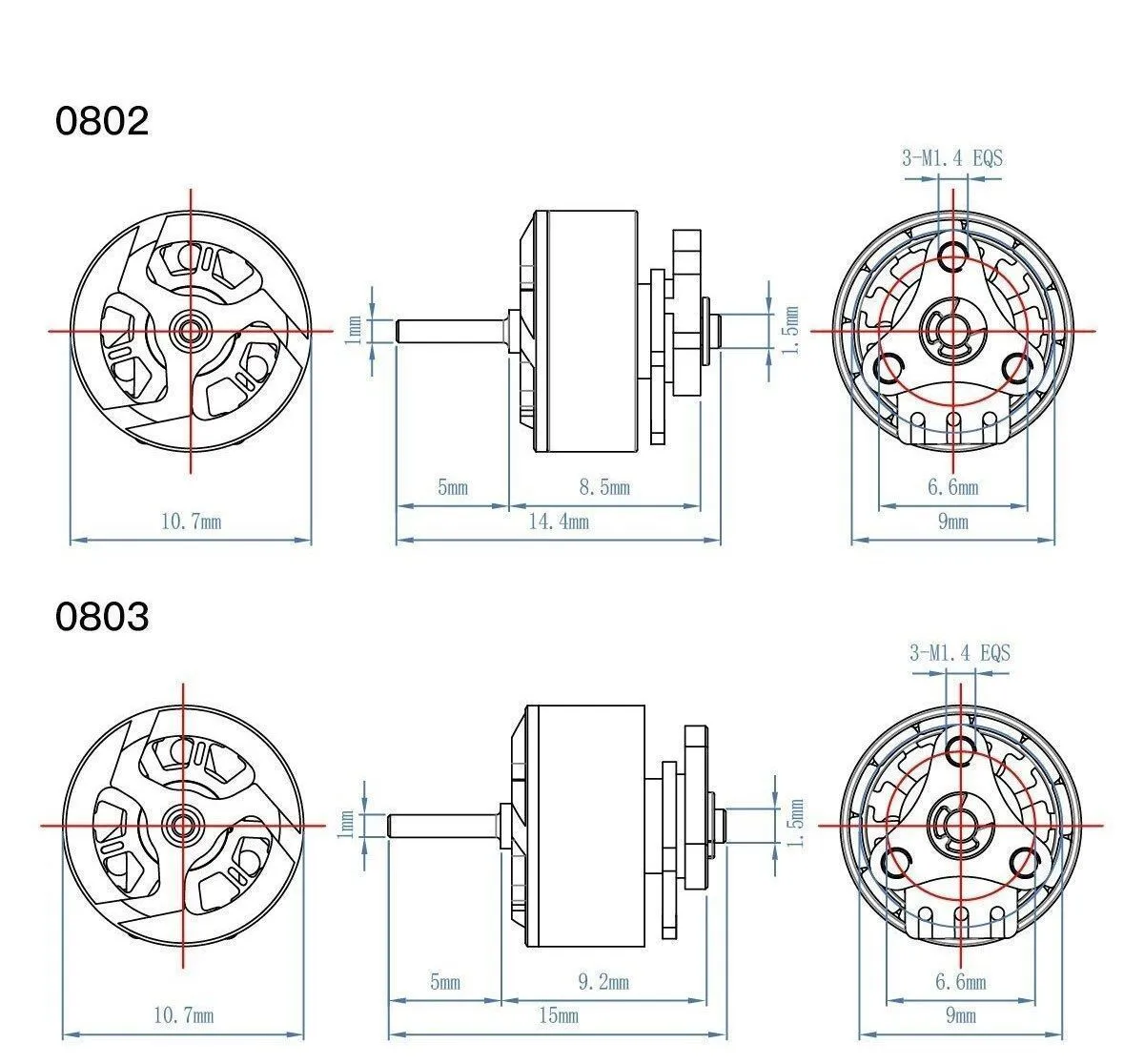 - Диаметр вала: 1.0 мм