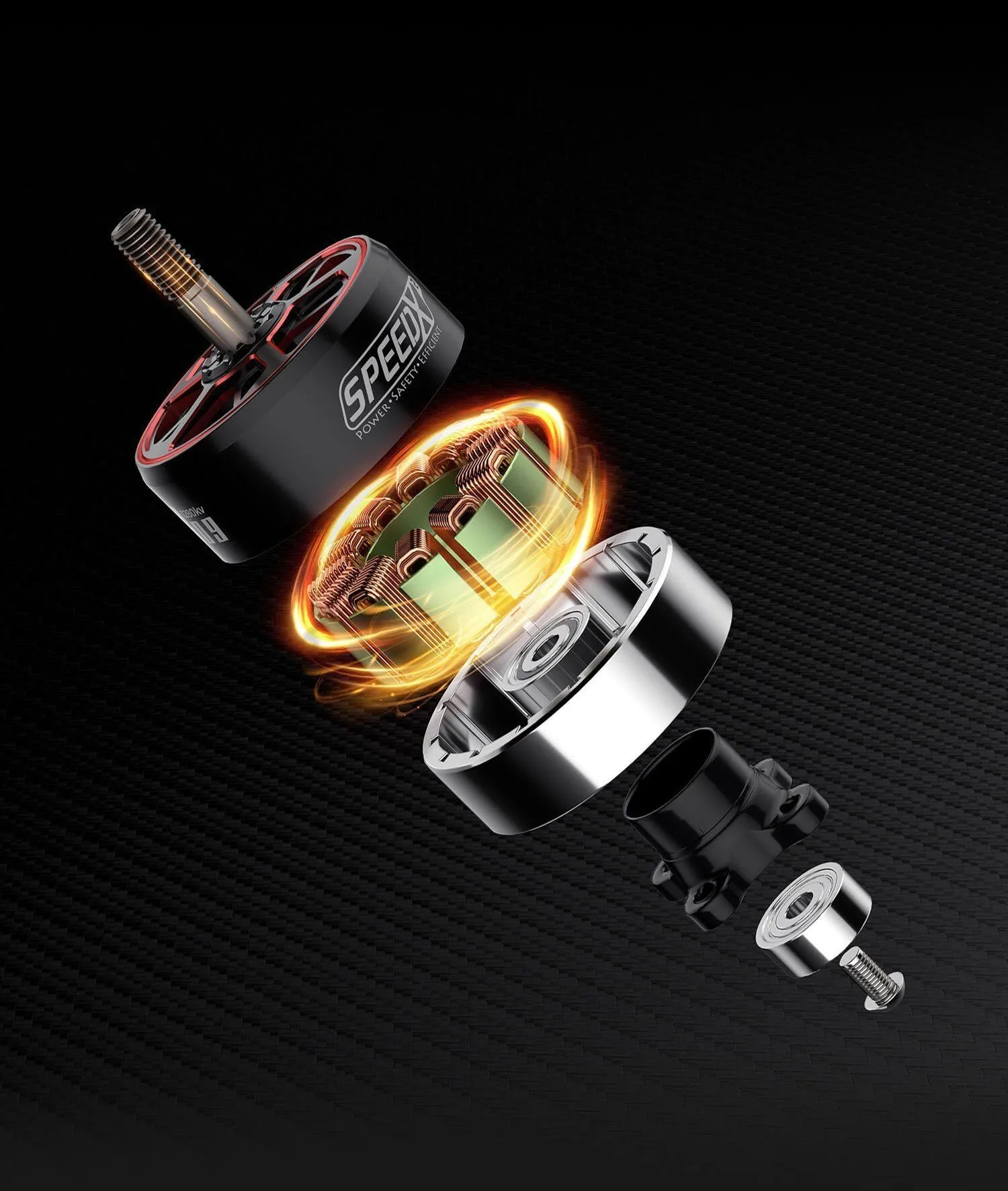 Мотор GEPRC SPEEDX2 2809 1280KV представляет собой мощный и высокоэффективный бесколлекторный двигатель, специально разработанный для FPV-дронов дальней дальности (long-range) с пропеллерами 7-8 дюймов, включая сборки X8. Эта модель отличается продуманной конструкцией, ориентированной на безопасность, эффективность и высокий крутящий момент. Благодаря использованию сердечника статора из кремнистой стали Kawasaki толщиной 0.2 мм и высококачественных магнитов N52SH, устойчивость к высоким температурам повышена на 30%. Мотор выполнен из авиационного алюминия 7075-T6 методом прецизионной CNC-обработки, имеет усиленную конструкцию ротора для высокой ударопрочности и стильный темно-красный дизайн.