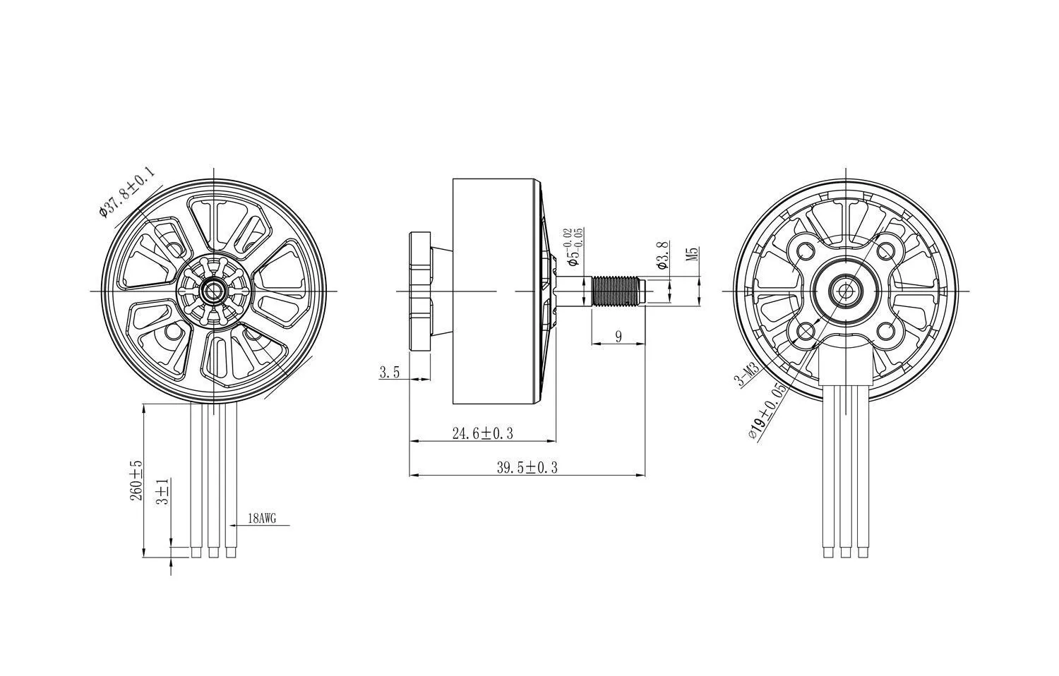 - Посадочные отверстия: 19 × 19 мм (M3)