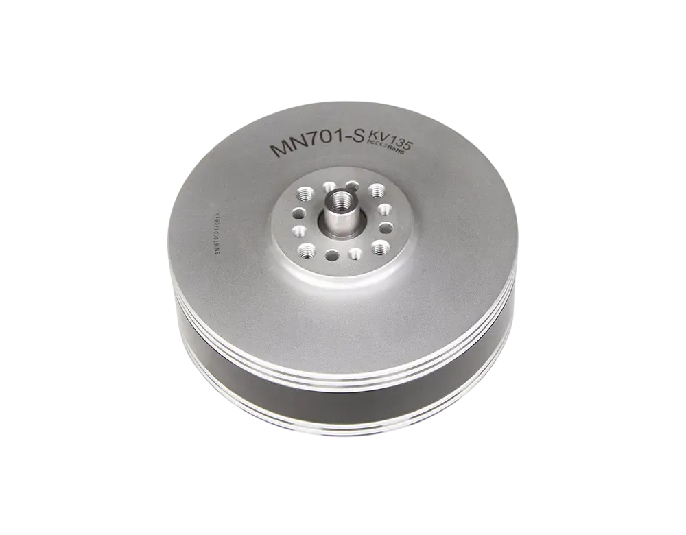 MN701-S KV135 — флагман серии Navigator для тяжёлых беспилотных платформ. Полузакрытый «колокол» с решётчатой структурой и пылезащитной сеткой улучшает вентиляцию и защищает от мусора, а антикоррозионная обработка (вал, подшипники, провода, статор/«колокол») продлевает ресурс в сырости и пыли. Двигатель рассчитан на 6–12S LiPo, демонстрирует тягу до 9,7 кг (с рекомендованными винтами) и отличается плавным ходом с низкими вибрациями — то, что нужно для аэросъёмки, картографии, tethered-решений и инспекций.